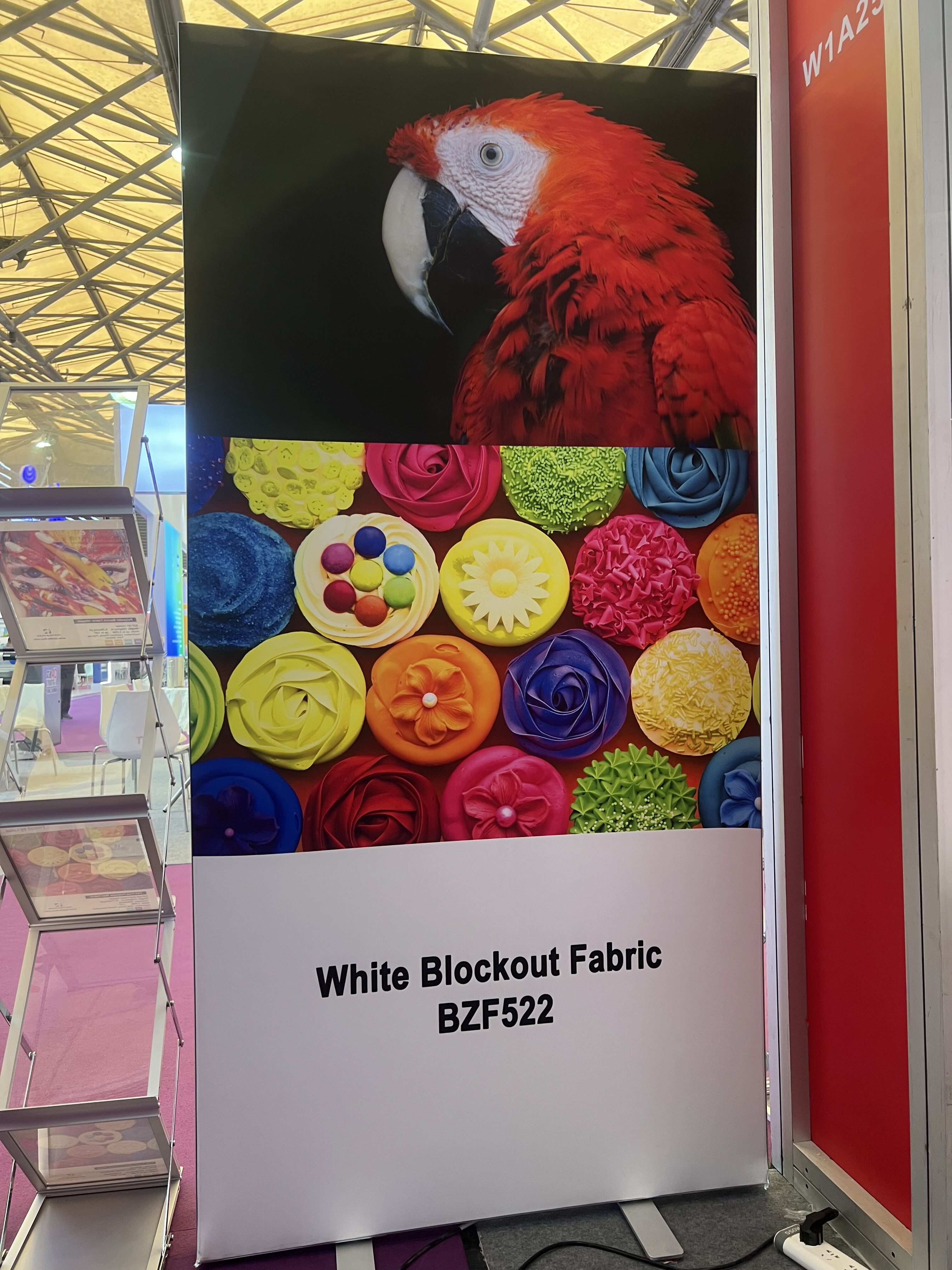 Lightbox Backing Blockout Fabric is a lightweight 245gsm high white blockout fabric with white/black/white structure developed for lightbox backing use. This blockout fabric is 100% opaque and block all lights. With very soft hand and crease-free feature, this lightbox backing fabric is suitable for folded shipments in a box. This lightbox backing fabric is printable with transfer sublimation and ideal for applications in light blocking, backdrop, banner, exhibit graphics.